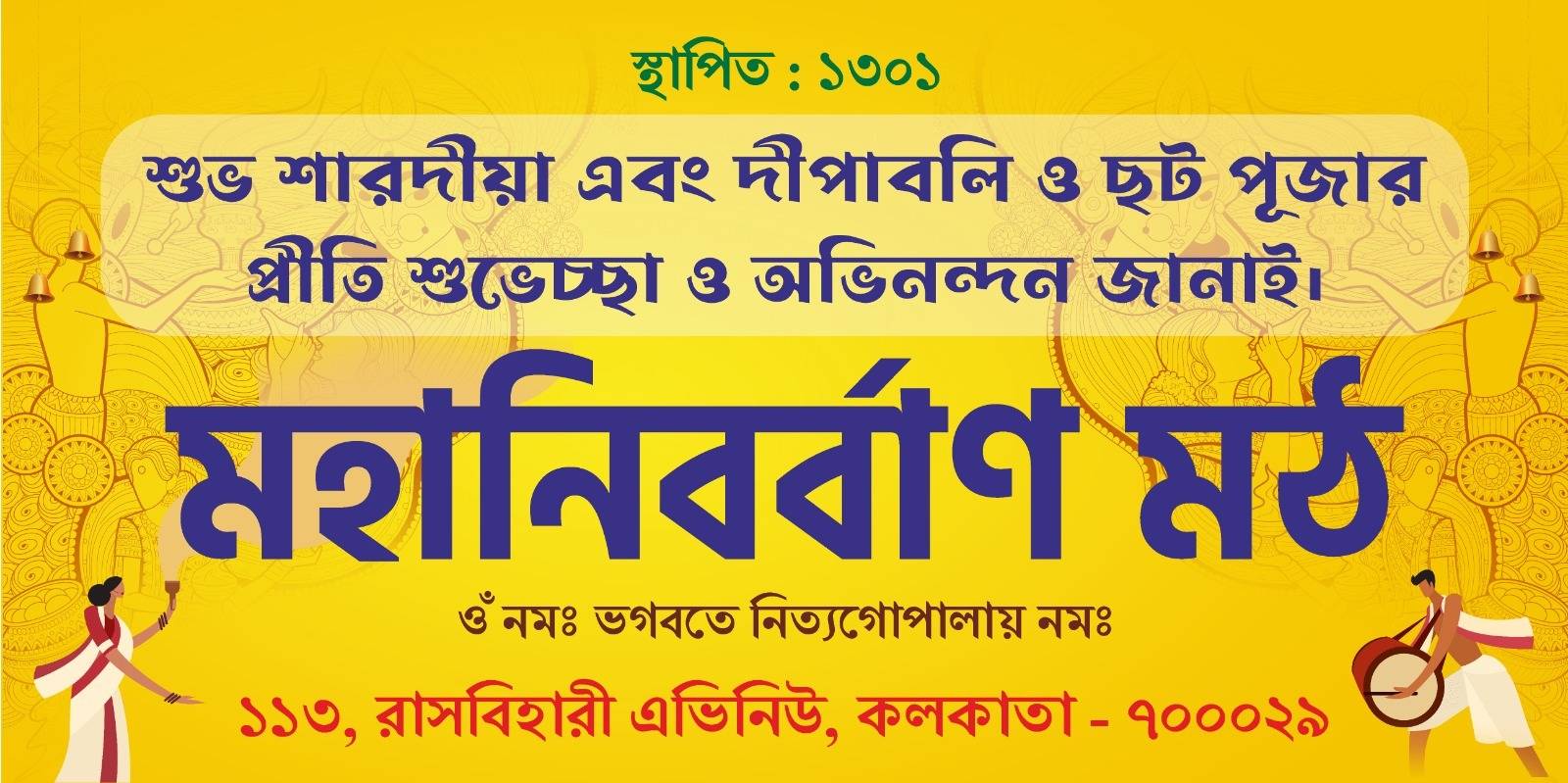 Param Guptavatara Bhagavan Sri Sri Nityagopal Dev established Mahanirban Math at Manoharpukur Road No. 29 on 5th Ashada 1301 (Eng 18th June 1894 AD), whose present address is 113, Rashbehari Avenue, Calcutta - 29. There is a pond among the trees of mango, bel, palm, coconut etc. Sri Sri Tagore Mutt then the entire area was covered with forest. This monastery was the hideout of independent forces.