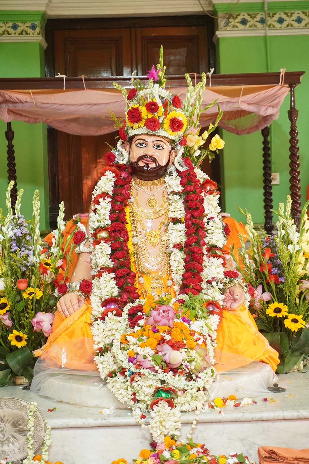 There will be small kuthuri on either side of the main path of the mutt and nahabats on the path - the above instructions were given by Tagore himself. Thakur Thakur also laid out the outline of what would be his Sevapujo or Vatrik Mahotsavadi Shakti by ordering the enshrinement of Tagore's body in copper grains on the ground above the main temple and the construction of three special altars.